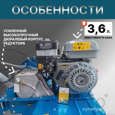 Небольшая масса (до 85 кг) и компактные габариты, что делает мотоблок легким в работе и маневренным, а также удобным в транспортировке.